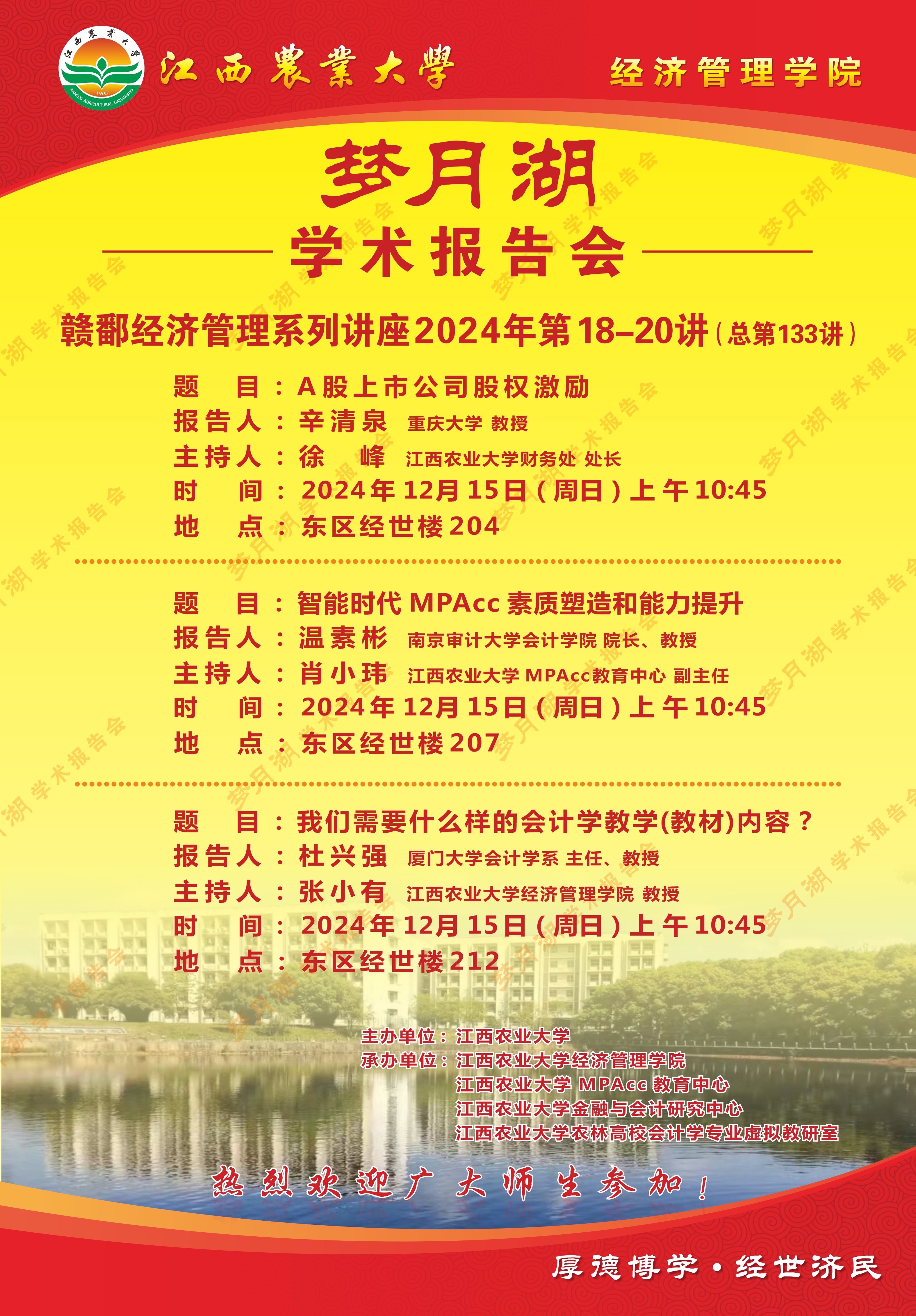 【学术报告会】赣鄱经济管理系列讲座2024年第18-20讲