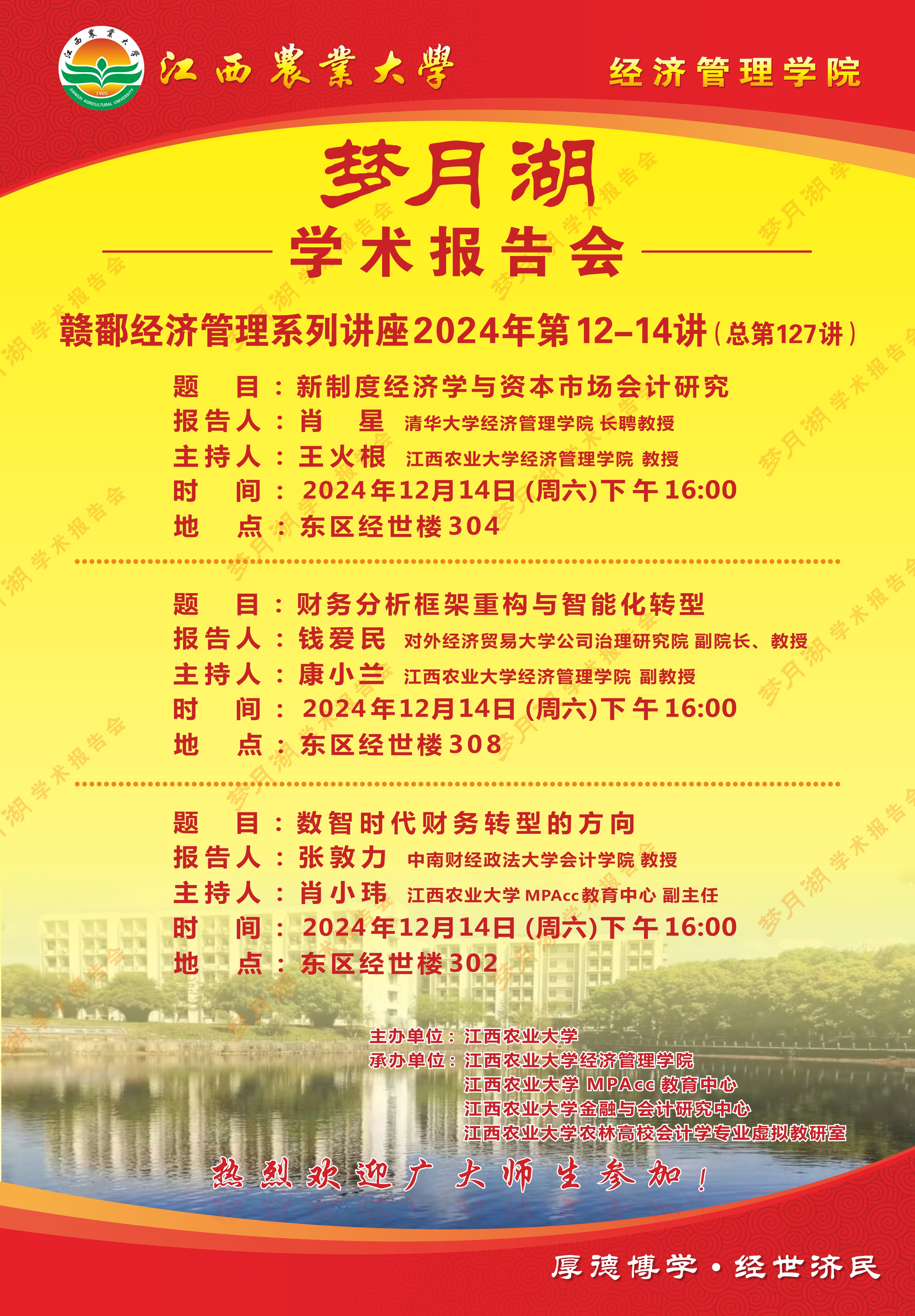 【学术报告会】赣鄱经济管理系列讲座2024年第12-14讲