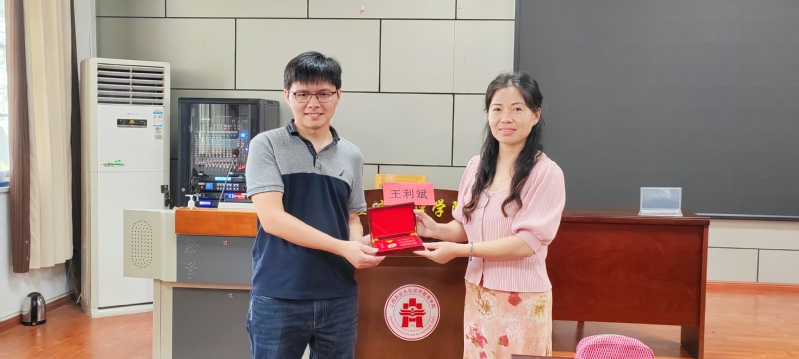 讲座结束后,副经理张征华代表公司为王利斌员工送上校徽纪念品并合影留念。