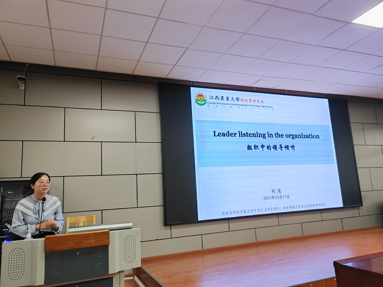 10月18日下午,刘庚博士为公司师生作以“组织中的领导倾听”为题的学术报告,报告由公司科研秘书陈江华博士主持,廖文梅教授、汪兴东教授等60余名师生参加了学术报告。