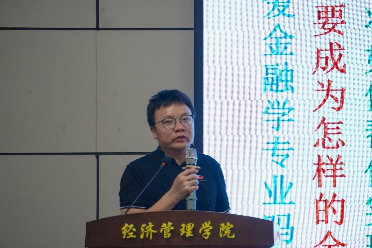 金融系副主任王火根老师从对未来30年职位的看法中,鼓励同学们在不确定性中寻找确定性,主动把握自己的努力方向。“志不立,如无舵之舟,无衔之马”,王老师指出,寻找确定性的第一步是立志,希望金融学子首先确立人生的方向,爬“对的梯子”,翻过自己想翻越的“墙”。第二是“知己知彼”,同学们要顺其自然,在“学”与“问”中自我操练、自我学习和自我成长;在哲学与政治中,延展人生的厚度,探索修行之平衡。最后是“行则将至”,“大鹏之动,非一羽之轻”,王老师勉励同学们在“行”中学,与其等风来,不如追风去,并从毕业去向的目标与计划,到日常文献和习题的实践与反馈,均须躬身入局,避免纸上谈兵。