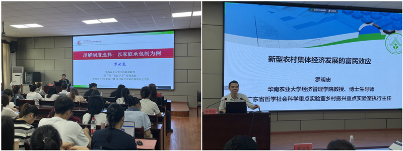 开班结束后,开展了为期两天的理论专题学习,分别邀请到华南农业大学罗必良教授主讲《理解制度选择:以家庭承包制为例》、华南农业大学罗明忠教授主讲《农村集体经济的富民效应》、中山大学黄新飞教授主讲《地理距离、经济社会联系与中国城市群融合发展:基于移动电话大数据的实证研究》、北京大学罗仁福教授主讲《乡村振兴与农业农村人才资本投资》、华南农业大学胡新艳教授主讲《资本下乡能否带动农户经营:绿能案例》、华中农业大学张露教授主讲《农业减量化逻辑》以及BB贝博艾弗森朱述斌教授主讲《农业强国建设的“江西贡献”》、BB贝博艾弗森付莲莲教授主讲《社科研究中的计量方法选择》。同学们受益匪浅。