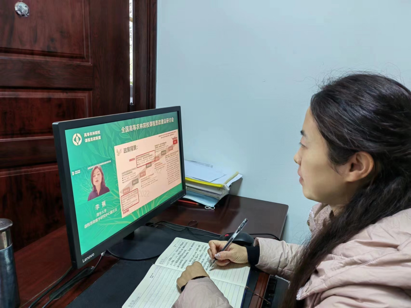 为进一步加强农林院校课程思政教学改革与研究,2022年12月4日,全国高等农林院校课程思政建设研讨会以线上会议形式召开,公司组织各教研室重点建设的五门课程思政任课教师参加研讨会。
