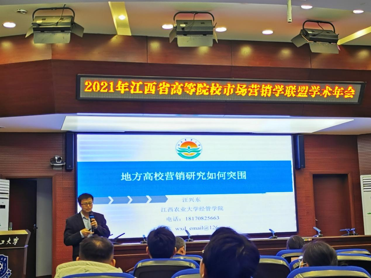 为共同探讨江西经济高质量跨越式发展与绿色营销创新,交流营销领域的最新研究成果,整合优秀学术资源,解决江西本土企业营销实践问题,“2021年江西省高等院校市场营销学联盟学术年会”于12月19日在东华理工大学召开。BB贝博艾弗森副经理张征华教授应邀参加并担任嘉宾主持人、工商管理系汪兴东教授应邀在大会上做了主题报告。