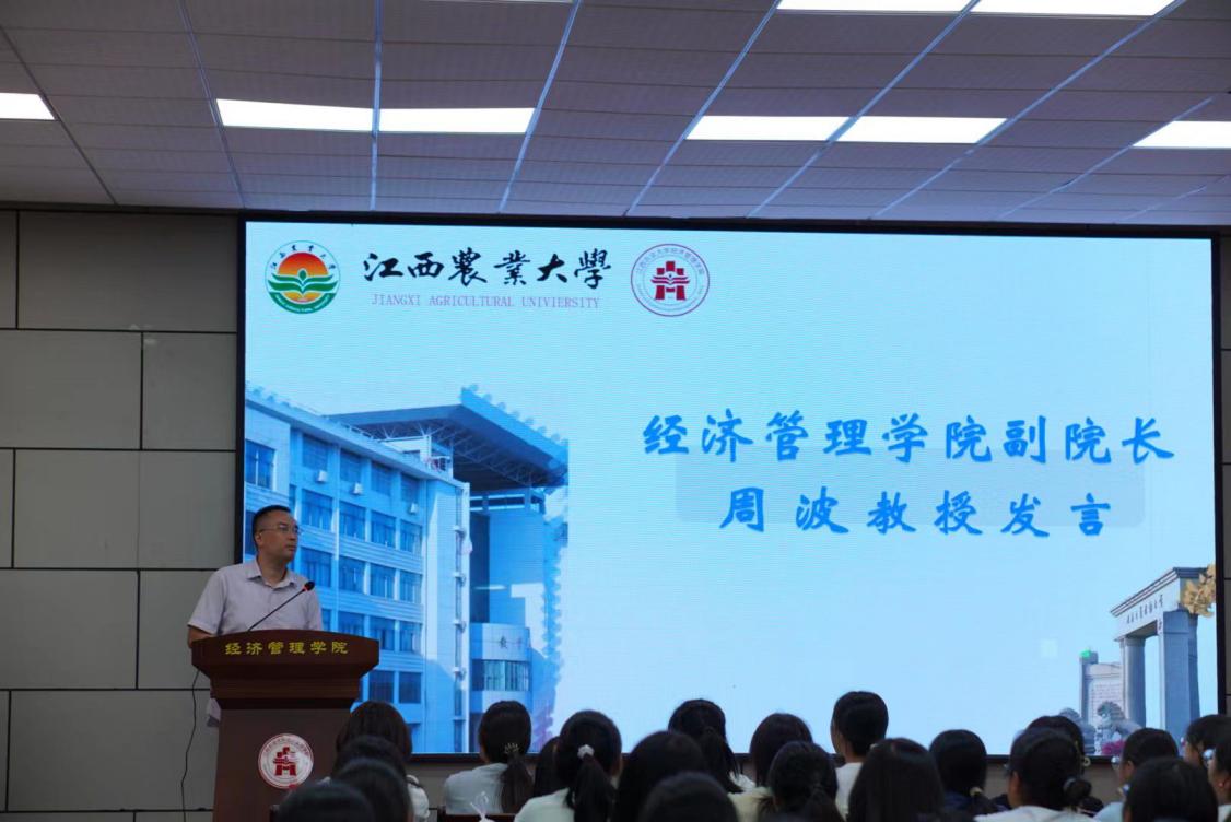 大会伊始,副经理周波以“金融是充满不确定性的”为背景,引出金融专业特点,并提出当下金融时代使命。当今数字化人才稀缺,数字金融方向大有可为。周波教授提出:一是要多关注农村金融,乡村振兴,当今素质人才非常稀缺,要树立目标,明确规划,结合未来前景,慎重考虑自己的目标;二是要提升金融素质,筑牢专业基础,跟随于时代,着眼于未来;三是要勇往直前,时代变化日新月异,机遇和挑战摆在眼前,要迎着时代向前走,扎扎实实,实现自己的人生目标。