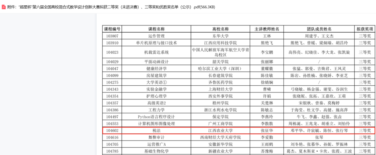 近日,公司张征华教授领衔的《税法》课程教学团队(团队成员:邓平华、许宸毓、陈恒、张行琴),凭借其新颖独特的教学设计及前瞻性的创新理念,在“超星杯”第六届全国高校混合式教学设计创新大赛中脱颖而出,荣获全国三等奖,实现了公司在国家级教学赛事中零突破。