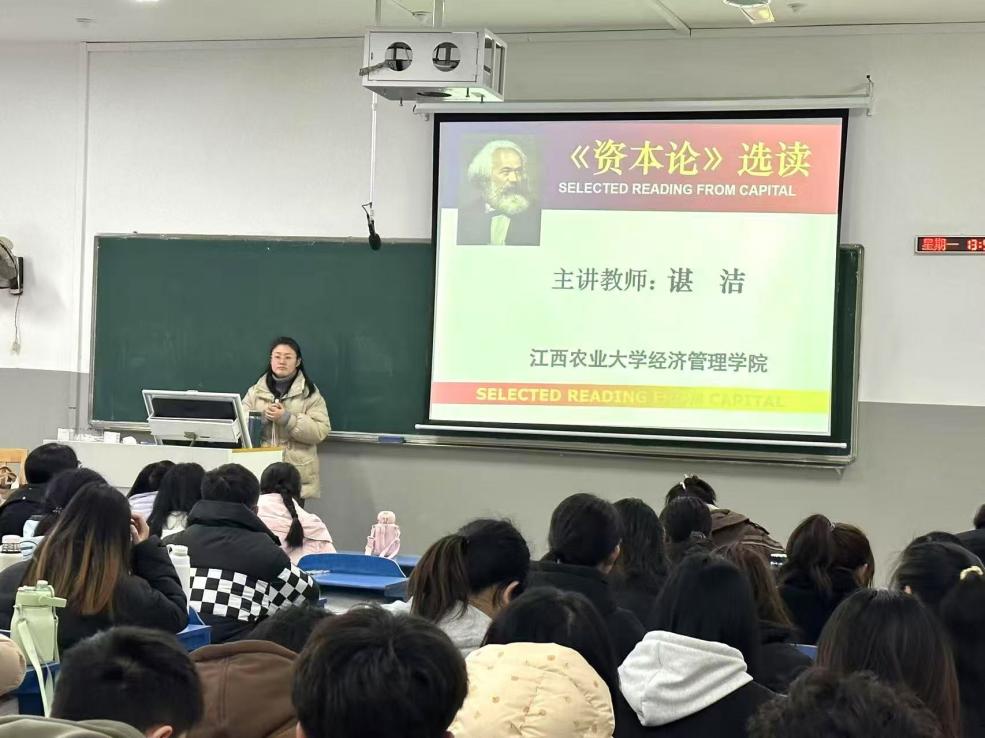 2月17日,公司本学期开课第一天,游金明副董事长在公司党委书记熊龙彪、经理李剑富及副经理张征华的陪同下,走进经济2201、2202班《资本论》选读的课堂,一起与同学们听课。课堂上,谌洁老师满怀激情,同学们精神饱满。课后,校领导对授课教师和同学们新学期的表现给予了充分肯定,并提出了相关建议。