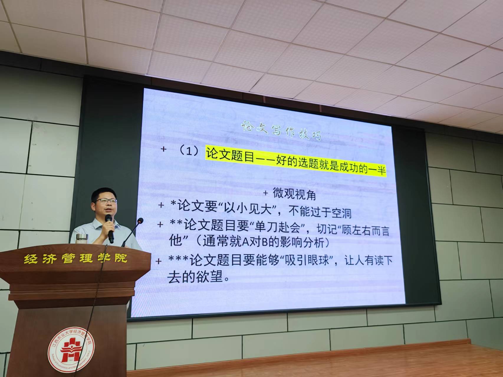 钱龙以“高水平论文写作与发表”为题,分析了论文发表越来越难的原因,帮助大家认清了高水平论文发表困难的现状,指出破解困局的关键在于掌握学术之“道”。为此,钱龙阐述了何为高水平论文与高水平论文的基本要求。他强调,高水平论文要满足规范性与创新性的基本要求,创新可从理论、视角、方法等方面去探索。为提高大家的论文写作技巧,钱龙从选题、摘要、引言、文献综述、理论分析与研究假说、研究设计、总结与启示等方面详细阐述了当前高水平论文的写作方法。报告结束后,现场师生积极交流,钱龙耐心地回答了师生们的提问。