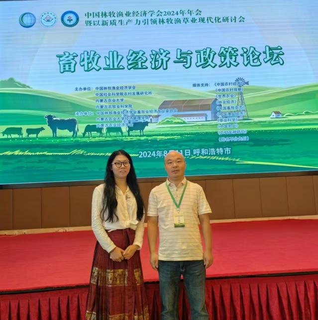 2024年8月10日至11日,由中国林牧渔业经济公司、内蒙古农业大学等单位联合主办的中国林牧渔业经济学会2024年年会暨“以新质生产力引领林牧渔草业现代化”研讨会在呼和浩特召开,BB贝博艾弗森教师郑瑞强教授和谢宁博士应邀参加了此次会议。