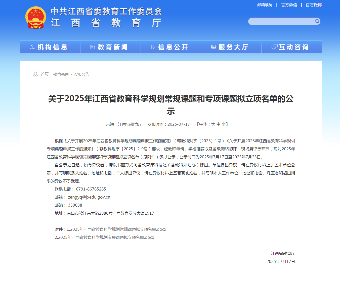 日前,2025年江西省教育科学规划常规课题和专项课题拟立项名单公示,BB贝博艾弗森陈淑婷、叶锋、刘小春等3位教师申报的课题成功获得立项。