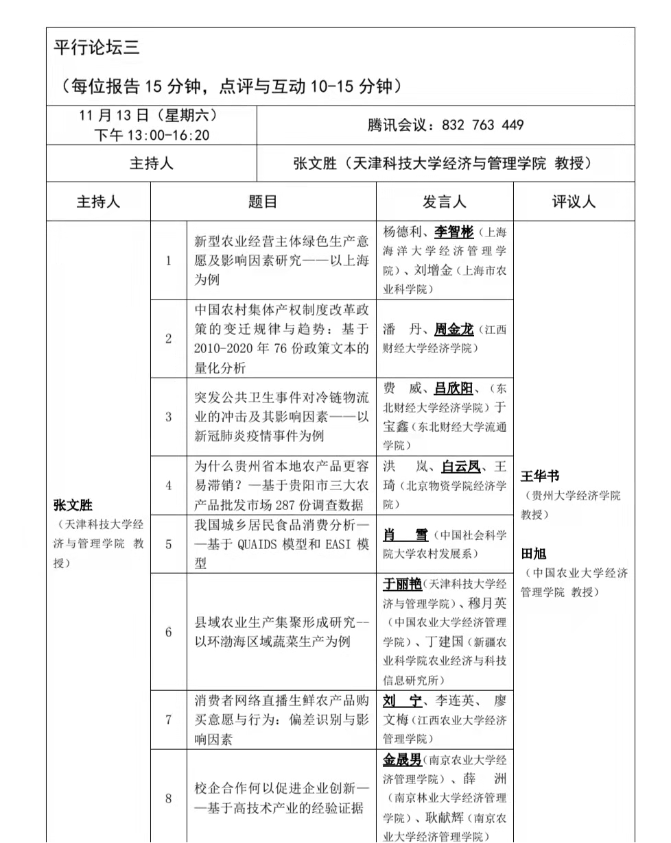 2021年11月13日,由中国农业经济学会食物经济专业委员会、江西财经大学联合主办,江西财经大学经济公司、中国农业农村现代化研究院和江西财经老员工态经济研究院联合承办的“中国农业经济学会食物经济专业委员会年会暨2021中国食物经济管理论坛”在线上举行,论坛主题为“新格局下中国食物系统的使命与挑战”。论坛分为上午和下午两个半场,共有近600位专家学者参加。