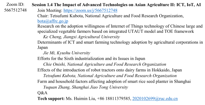 12月6日-8日,由亚洲农业经济学家协会、北京大学、中国人民大学和中国农业大学联合承办的2021年第10届亚洲农经国际会议(10th Asian Society of Agricultural Economists (ASAE) International Conference)在线上举行,论坛主题为“Gearing Asian Agriculture under the Fourth Industrial Revolution: Opportunities and Challenges”。公司2019级企业管理专业硕士研究生刘宁、2020级企业管理专业硕士研究生成可在李连英老师的带领和指导下参加了此次论坛并作了线上汇报。在论坛上,刘宁、成可同学分别以“Purchase Intention and Behavior of Young Consumers for Live-streaming Fresh Agricultural Products: Deviation Identification and Influencing Factors”、“Research on the adoption willingness of Internet of Things technology of Chinese large and specialized vegetable farmers based on integrated UTAUT model and TOE framework”为题作了平行论坛报告,点评老师给予了中肯的评价,提出了宝贵的修改意见。与会师生围绕第四次工业革命下的亚洲农业装备:机遇与挑战这一主题进行了热烈的讨论,旨在共同促进农业和农村经济的快速发展。