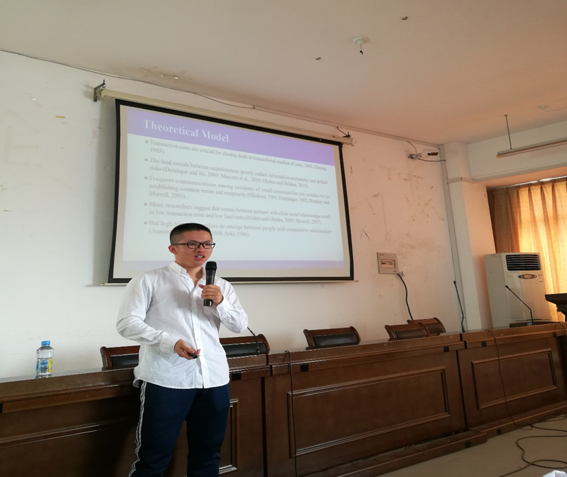仇童伟博士在报告中将农地流转动机细分为非营利性动机与盈利性动机,将农地流转对象划分为熟人与非熟人,研究发现:盈利性农地流转动机将会显著推高农地租金,但熟人与非熟人的盈利性动机下的农地租金水平并没有显著差异。通过讲座,仇童伟博士不仅向现场师生介绍了农地流转领域研究的最新发展方向,而且向大家展示了如何写作高水平英文论文。现场师生纷纷表示此次报告受益匪浅。